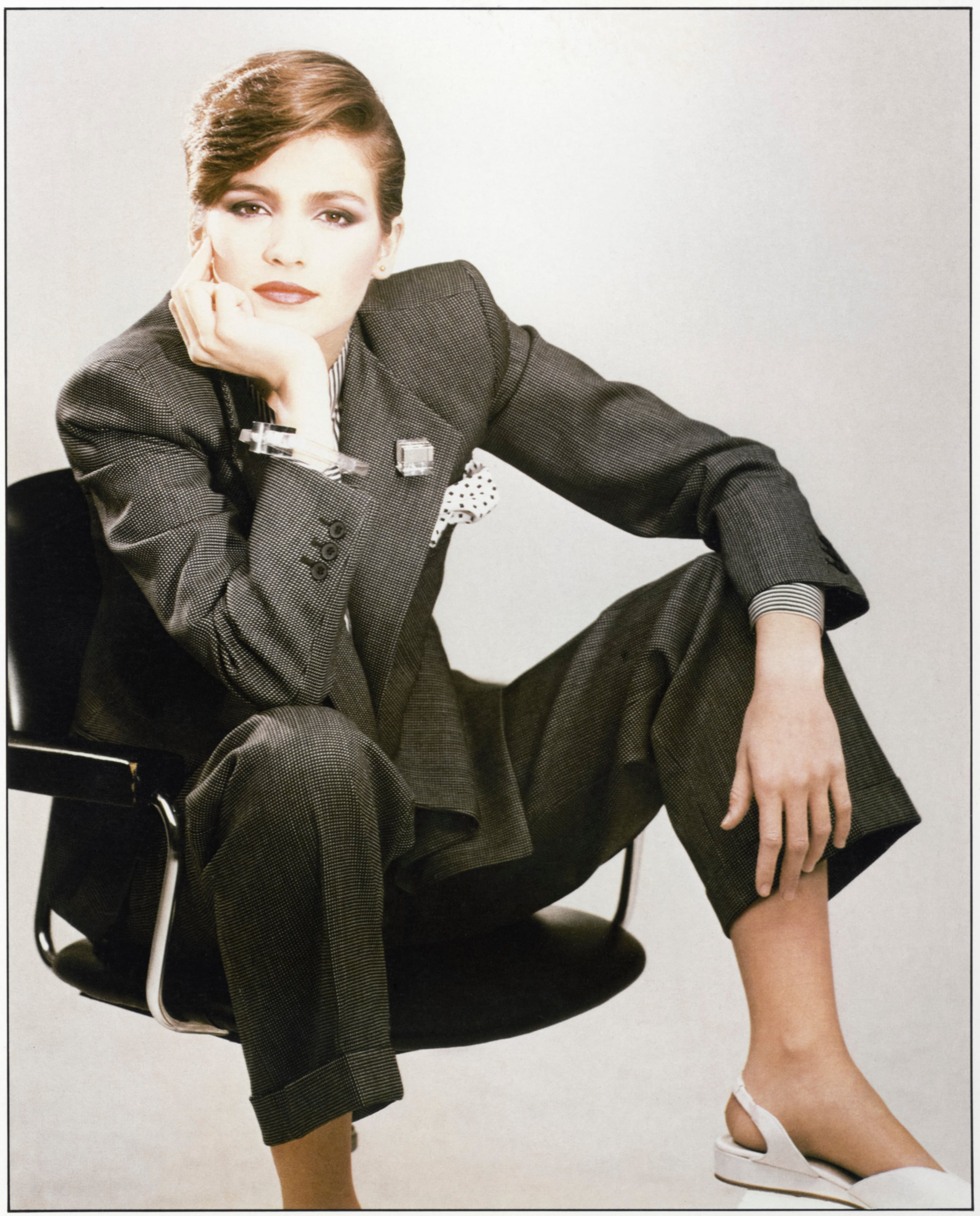 Bozzetto di Giorgio Armani che illustra un completo della collezione Autunno—Inverno 1981.